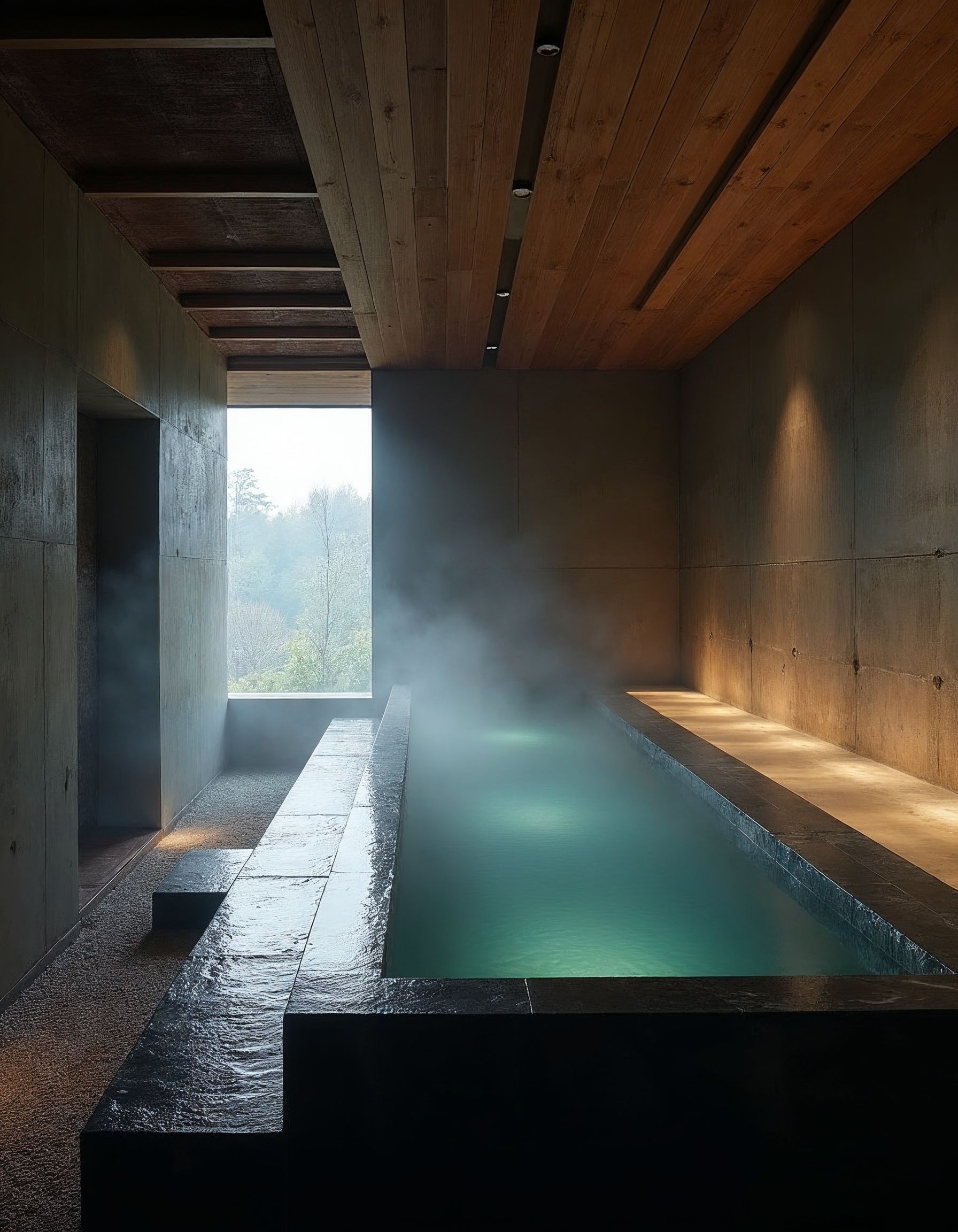3. The Imagined Through ROOM 404, I’ve been experimenting with creating spaces that don’t exist… yet. For this issue, I designed an onsen inspired by brutalist architecture — concrete softened by steam, glass catching the last light of the day.